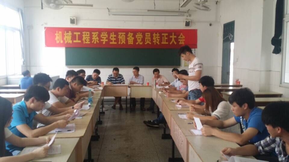2015年6月24日下午,机械工程系第一党支部、第二党支部分别在教2楼102、101教室召开支部大会,讨论周剑萍等36名预备党员的转正问题,各支部党员及申请转正的预备党员参加了会议。