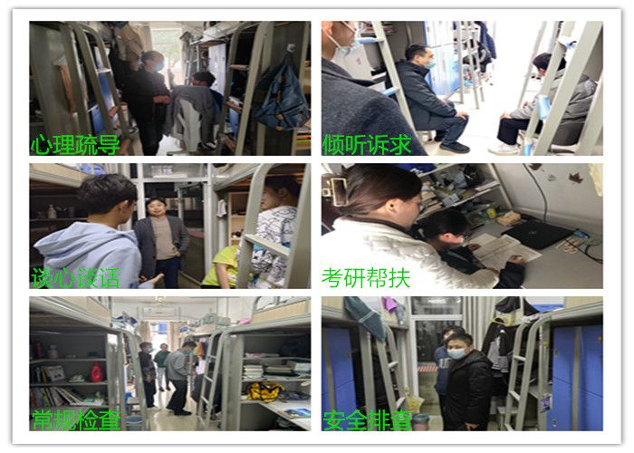 支部全体党员用心、用情、用力、用智深入学生宿舍,零距离了解学生们的生活状态,广泛倾听学生心声,及时解决他们遇到的实际困难。宿舍现场,党员同志们实时了解学生近期思想动态,第一时间排查心理异常学生,并建立心理健康台账。大家每到一处,都反复叮嘱同学们注意用电安全,多通风、勤洗手,防范电信诈骗,少聚集,出门戴好口罩,进一步提高自我安全意识和防范能力。同时,柏媛媛老师还与22级机制专业联培本科生达成了考研结对帮扶意愿,今后就专业课重难点、院校情况、复习方法、面试技巧等方面给予学生具体指导。针对“宿舍阳台晾衣不便、校园网经常卡顿、食堂饭菜价格偏高”等问题,教师们一一作了详细记录并表示会尽全力帮助大家。