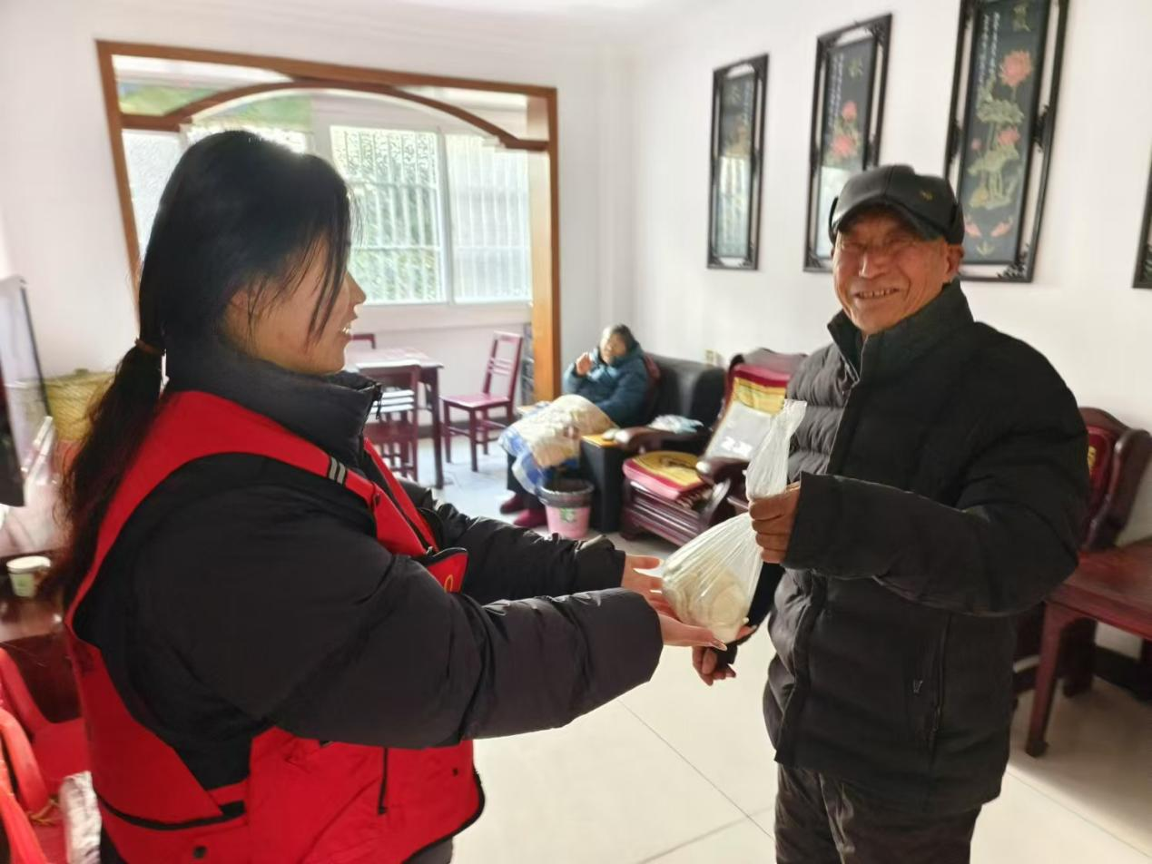 举办活动的同时,同学们也没有忘记空巢、独居老人等特殊家庭,在社区工作人员的指引下,同学们前往部分特殊家庭家中,将饺子送到老人们手里,为他们送上节日的问候。