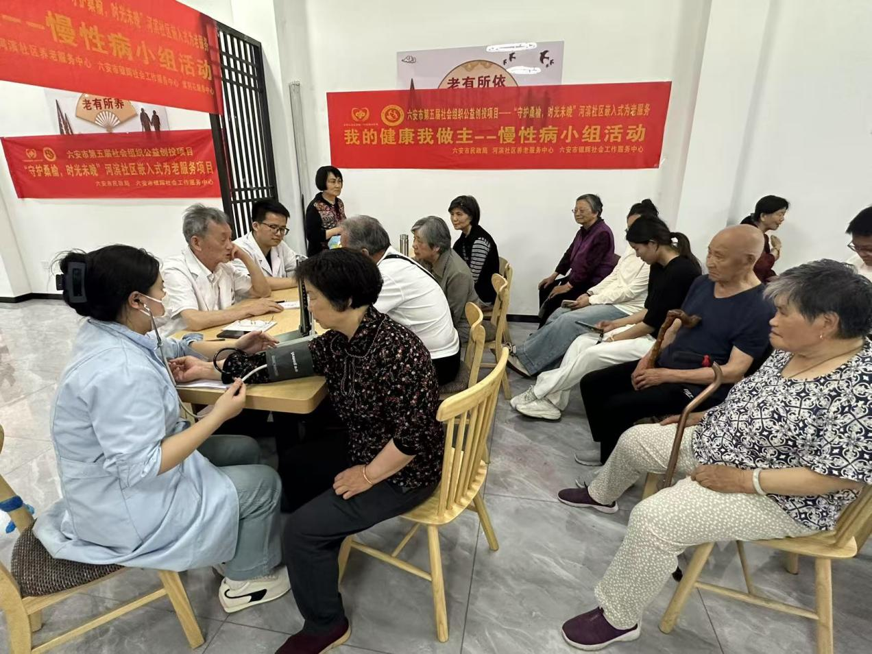 活动现场,志愿者们帮助社区摆放好医疗设施和搀扶腿脚不便的老人顺利到达河滨社区养老服务中心,配合社区工作人员安排好每一个环节,维护好现场的秩序,让老人们能更便捷、更迅速、更安心地完成各项检查。