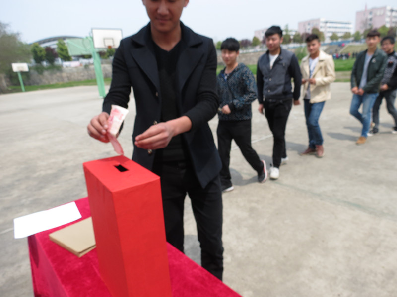 4月10日中午,由机械工程系团总支发起向卢海同学捐款的倡议,得到全系同学积极响应。募捐现场,机械系团总支学生会干部率先将手中的‘传递温暖的信物’投入募捐箱,一元、五元、十元、二十元、一百元……一笔笔充满爱心的善款从同学们手中汇集到一起。