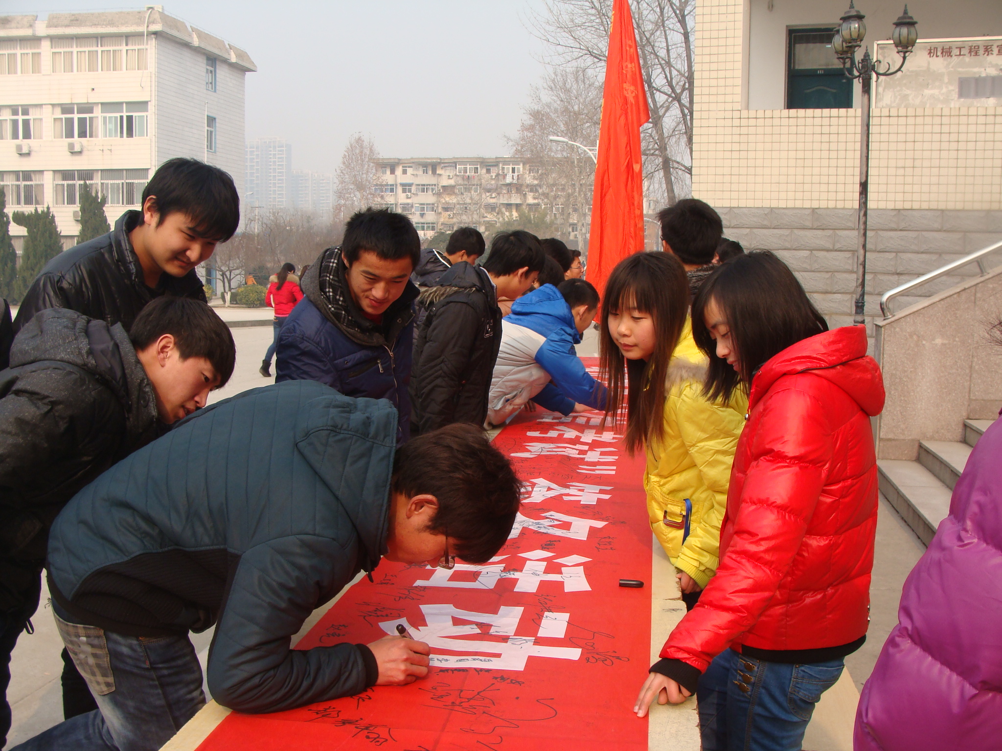 为了营造良好的考试氛围,加强校园学风建设,机械工程系于2013年1月9日11时30分在教二楼前举行“端正考风,诚信考试”签名活动。此举也获得了院系学生的大力支持,大家纷纷加入签名活动之中,现场人声鼎沸、一片火热。本次活动的举行,不仅体现了该系对校园学风建设、考风建设的重视与关注,更体现了院校老师对教育工作的严谨态度,强调知行合一,重在培养学生“君子以诚为本”的思想道德风尚。