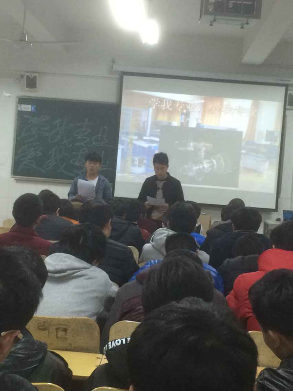 春暖花开的日子,给人带来几许暖意,几许温馨,让人品味到生命的甘美,生命的真实,生命的激越...我们在一方天地里共同学习知识、感悟生活,用不同的方式诠释青春和友谊的蕴涵......随着两位主持人走上前台,我院机械工程系15机械设计与制造两个班级命名为《学我专业、爱我专业》的主题班会正式拉开了帷幕。