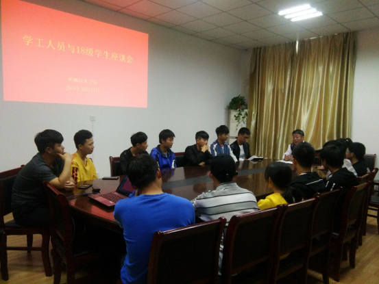 (机械技术学院张艳华) 为进一步了解学生的学习、生活和思想动态,搭建和畅通与学生沟通的桥梁,10月25日下午,机械技术学院召开学工人员与18级学生代表座谈会,展开面对面交流。本次座谈会由18级辅导员张艳华主持,院党总支书记张宗江、团总支书记袁帅和18级各班学生代表参加了会议。