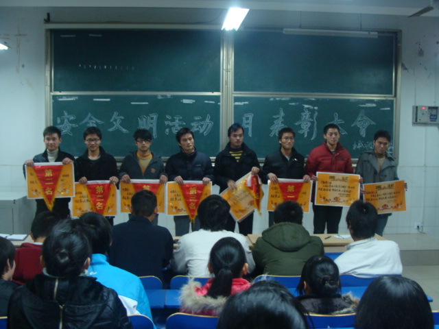 2009年11月30日,我系团总支精心的组织,系属各班级同学们积极配合参与的活动“安全文明活动月”落下了帷幕。下午5:30在2#105举行了总结大会,会议第一项由指导老师陈思总结了本次活动,她充分肯定了本次活动的成效,并感谢系属各班级班主任的配合,希望各位同学们经过本次活动,加强自己自我教育、自我管理、自我约束的能力。会议第二项由本次活动的第一名班级班长和第一名宿舍长代表全系同学发言,把自己的工作经验与参会同学进行了交流。最后陈老师对各个获奖班级和寝室进行颁奖表彰,大家合影留念。会议于晚上7:00伴随着同学们的掌声圆满结束。