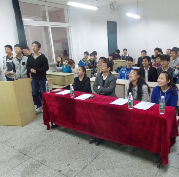 2014年4月16日下午,二号教学楼104教室不时传来阵阵欢笑声,机械工程系机设121班以“安全、卫生、文明”为主题的团活动正如火如荼的进行中。系党总支书记吴方庭、辅导员张艳华老师和班主任项华应邀参加。