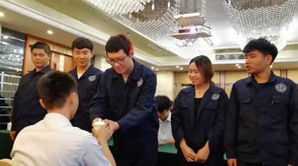 随后,学徒制试点班的学徒与师傅签订现代学徒制师徒协议书,拜师并给师傅敬茶,顺利完成拜师仪式。