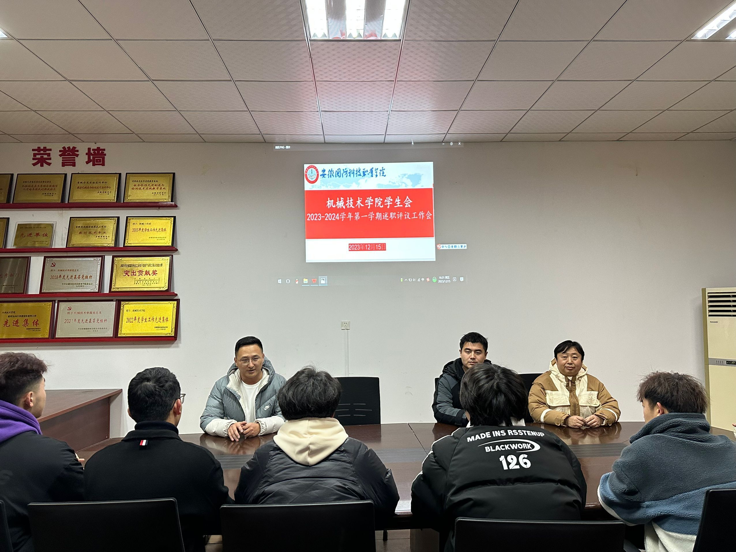 本网讯(学生通讯员:周能能)为进一步加强对校院两级学生会组织工作人员的管理和监督,全面准确地掌握学生干部的工作情况,提高学生干部的责任意识、服务意识和大局意识,贯彻落实《关于推动高校学生会(研究生会)深化改革的若干意见》(中青联发〔2019〕9号)有关要求,机械技术学院与2023年12月15日开展2023-2024学年第一学期学生会工作人员述职评议工作。机械技术学院党总支副书记张红军,团总支书记王腾州及社团指导老师和学生会工作人员代表、学生代表参加汇报。