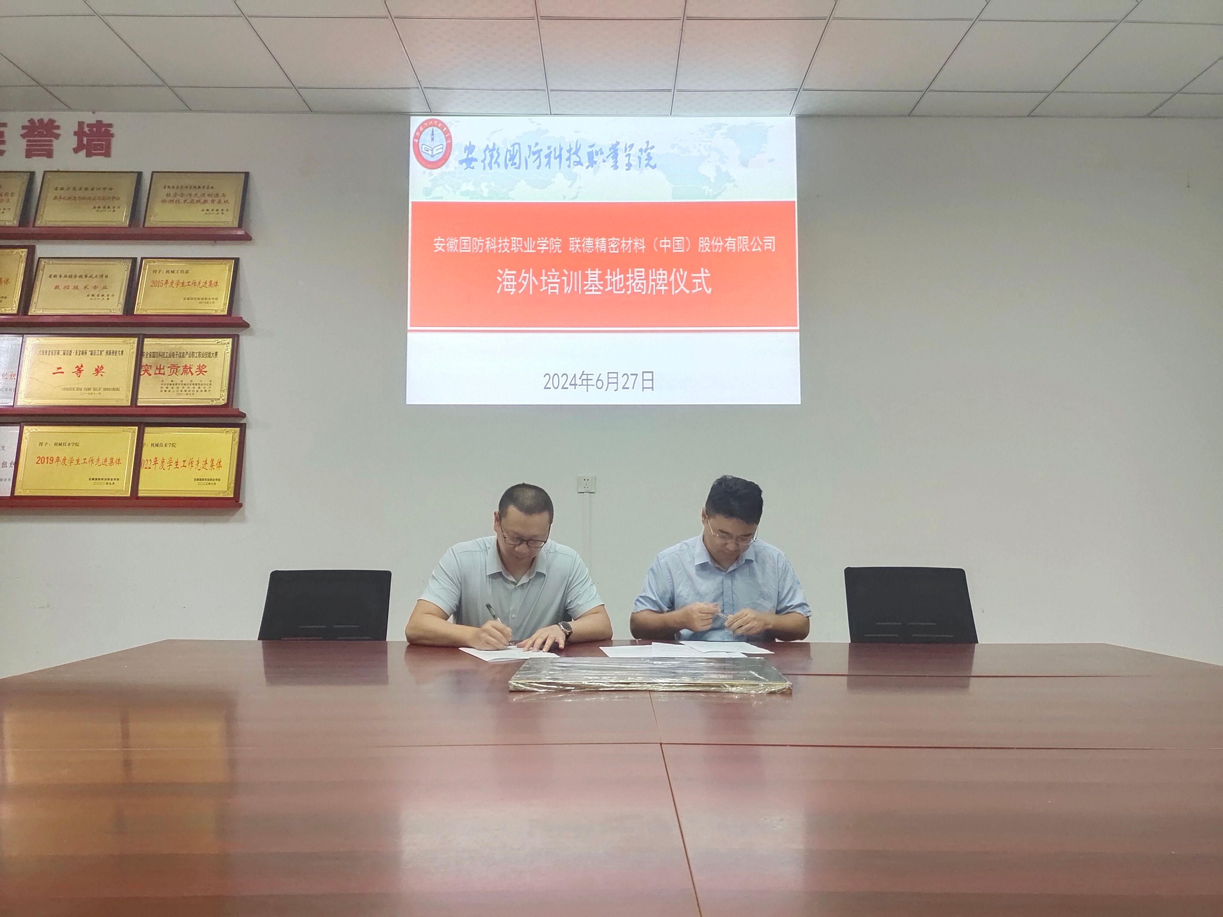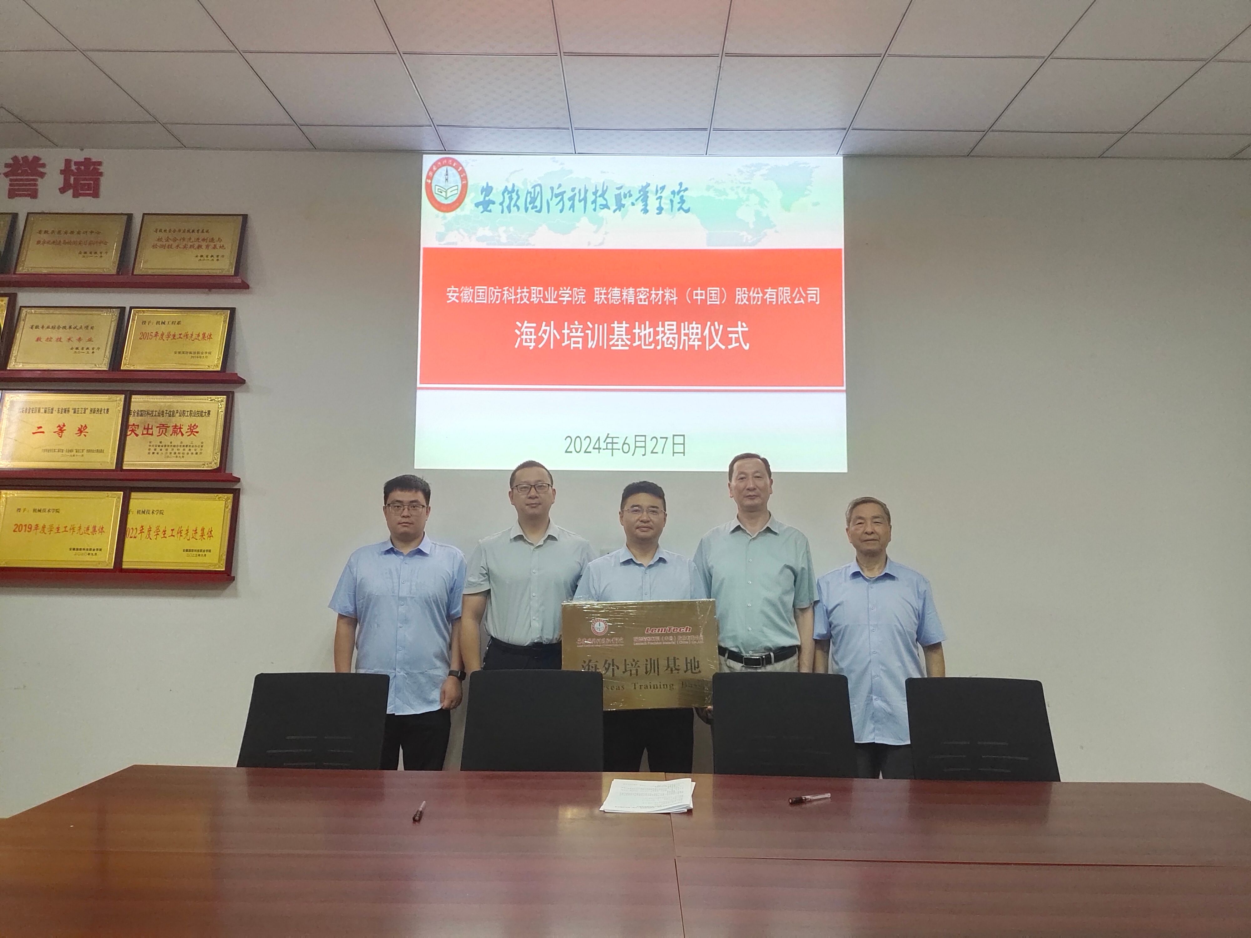 6月27日下午,机械技术学院与联德精密材料(中国)股份有限公司隆重举行“海外培训基地”揭牌仪式,仪式在知行楼120会议室举行。党政办主任李大武、联德公司管理部经理康世杰等领导出席了此次活动,由机械技术学院副院长熊良平主持。