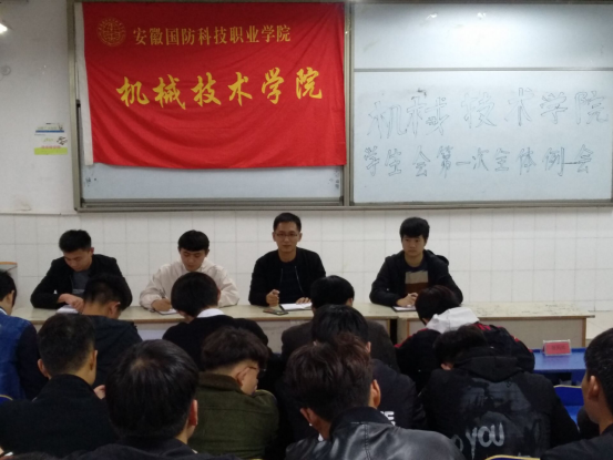 2018年11月28日下午五点,机械技术学院在2教105召开第一次团总支学生会全体例会。团总支书记袁帅、学生会主席汪彦宇、团总支副书记程涛以及机械技术学院学生会全体成员出席会议。