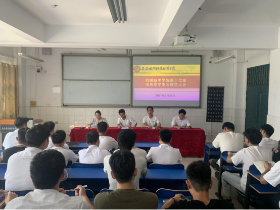 2021年6月30日下午,机械技术学院在2教105室举行第十七届团总支学生会成立大会。机械技术学院党总支书记张宗江、党总支副书记陈思、团总支学生会全体成员及各班班干出席本次会议,会议由机械技术学院团总支书记袁帅主持。