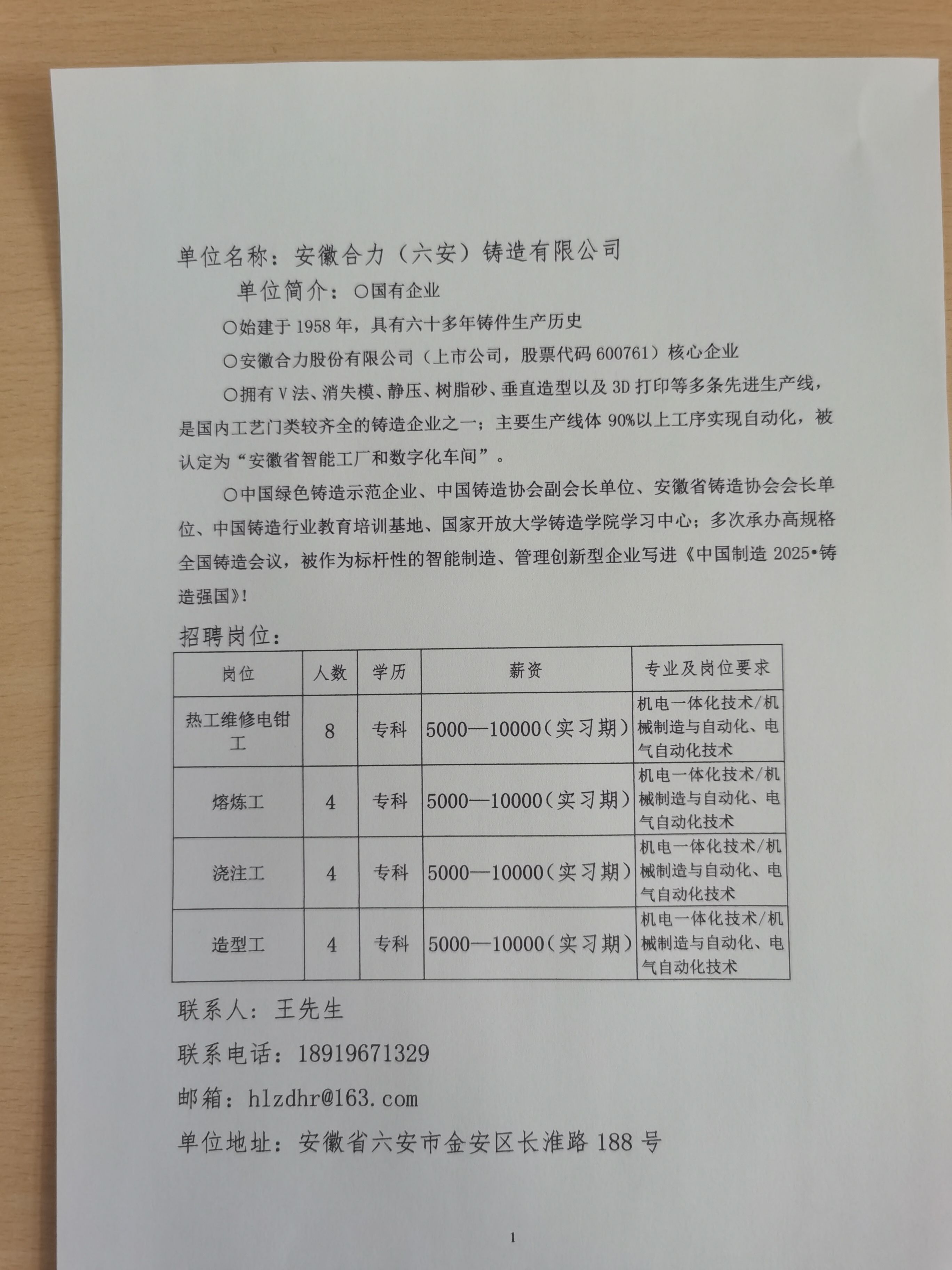 安徽合力(六安)铸造有限公司