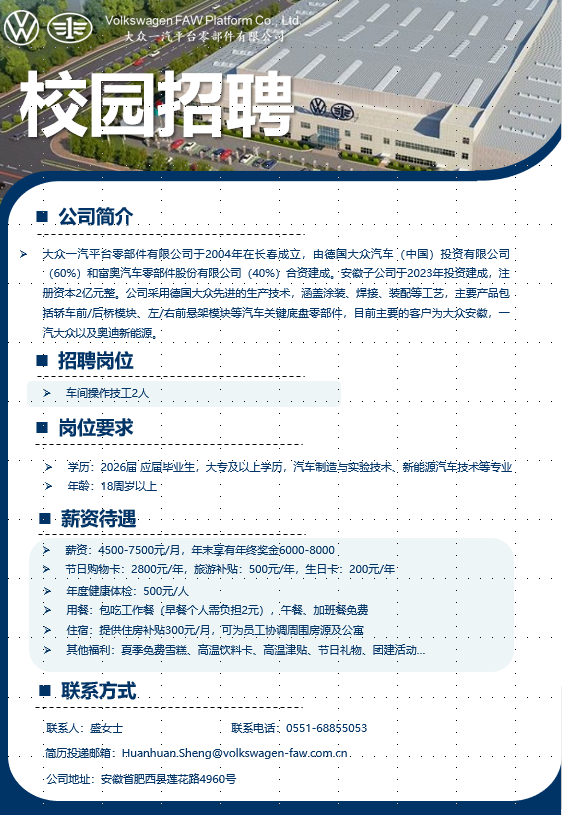 大众一汽平台零部件(安徽)有限公司