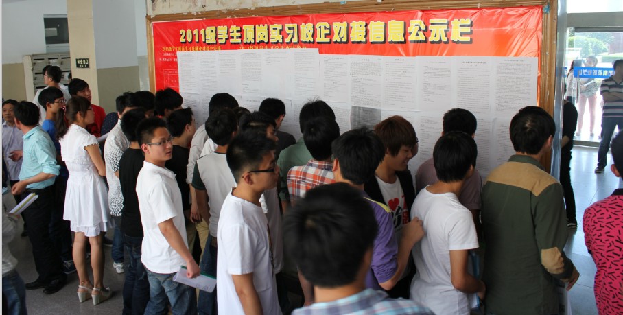 5月12日下午,学院2号教学楼内人流如潮,热闹非凡,2011级学生顶岗实习对接会在这里隆重举办,来自安徽军工集团、中国电子科技集团、江汽集团、中航集团、四川长虹集团、合力叉车集团及省内外知名企业共计31家单位参加了对接会,本次对接会共提供实习岗位1500余个,涵盖有机械制造、机电技术、数控技术、模具设计、计算机、物流、市场营销等20多个专业,学院约2000多名学生大会并向用人单位投寄了简历,整个洽谈会现场十分火爆,企业求贤若渴,同学们投递简历踊跃,企业满载而归,同学们也都选择到了理想的单位。