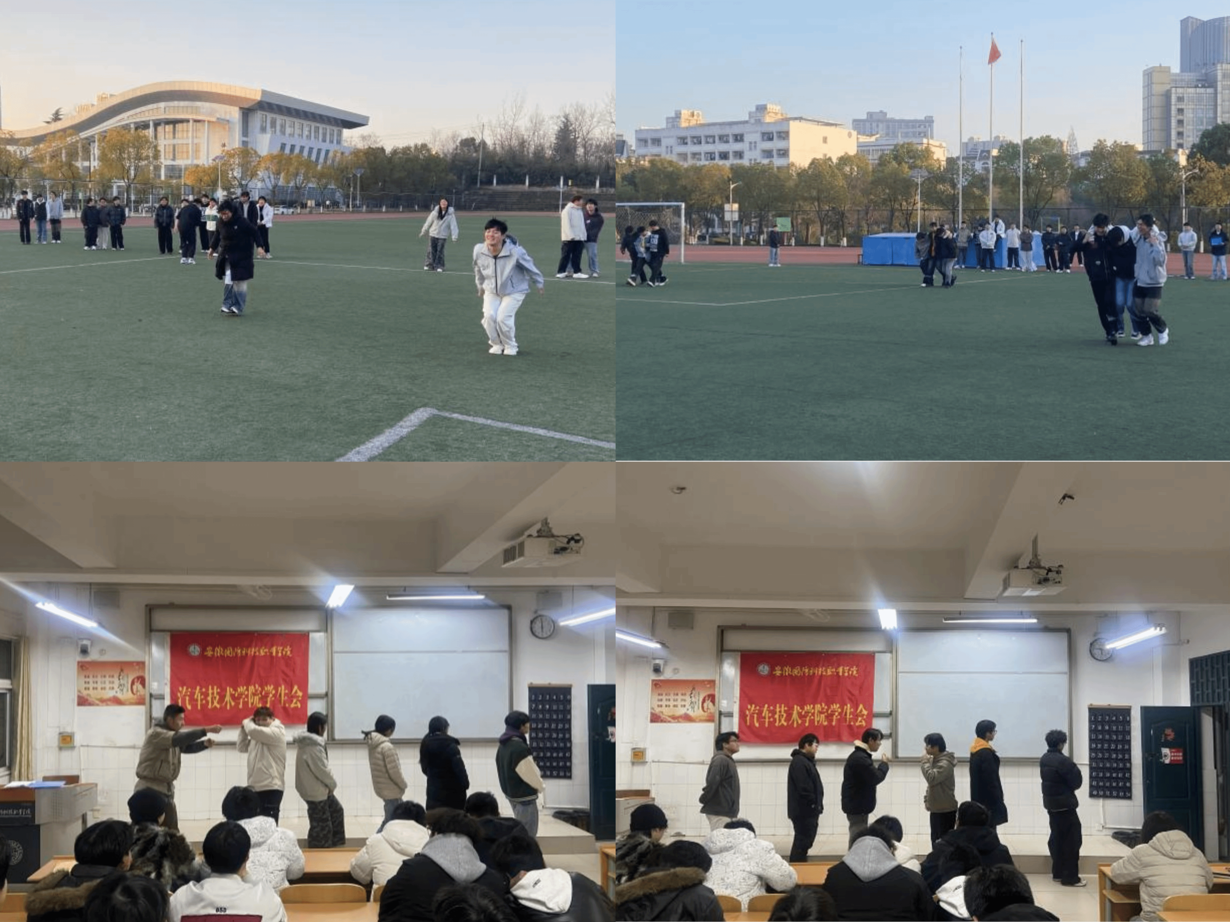本网讯(学生通讯员 卜平凡)为加强学生会内部建设,提升团队协作能力与凝聚力,12月28日下午,汽车技术学院学生会在学校操场组织了一场别开生面的素质拓展活动。学院学生会各部门学生代表参与活动,在欢声笑语与紧密合作中,完成了一场体力、智慧与默契的综合挑战。
