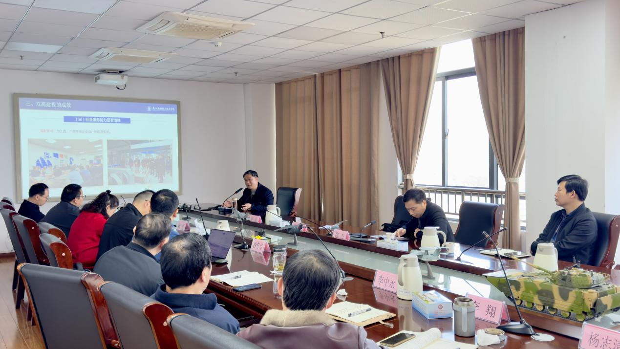 为深入推进学校高水平高职院校和专业群建设,提高工作建设质效,万象城官网于3月12日在秉心楼11楼会议室召开“中国特色高水平高职学校的探索与实践”专题培训会。此次会议特邀武汉船舶职业技术学院副校长肖亚明教授担任主讲嘉宾,由学校党委委员、副校长付贤政主持。武汉船舶职业技术学院教务处处长兼双高办主任徐杰、双高办副主任赵磊、万象城官网双高建设学校层面的主要成员以及双高建设专业群所在学院的负责人和核心成员参加了本次培训。