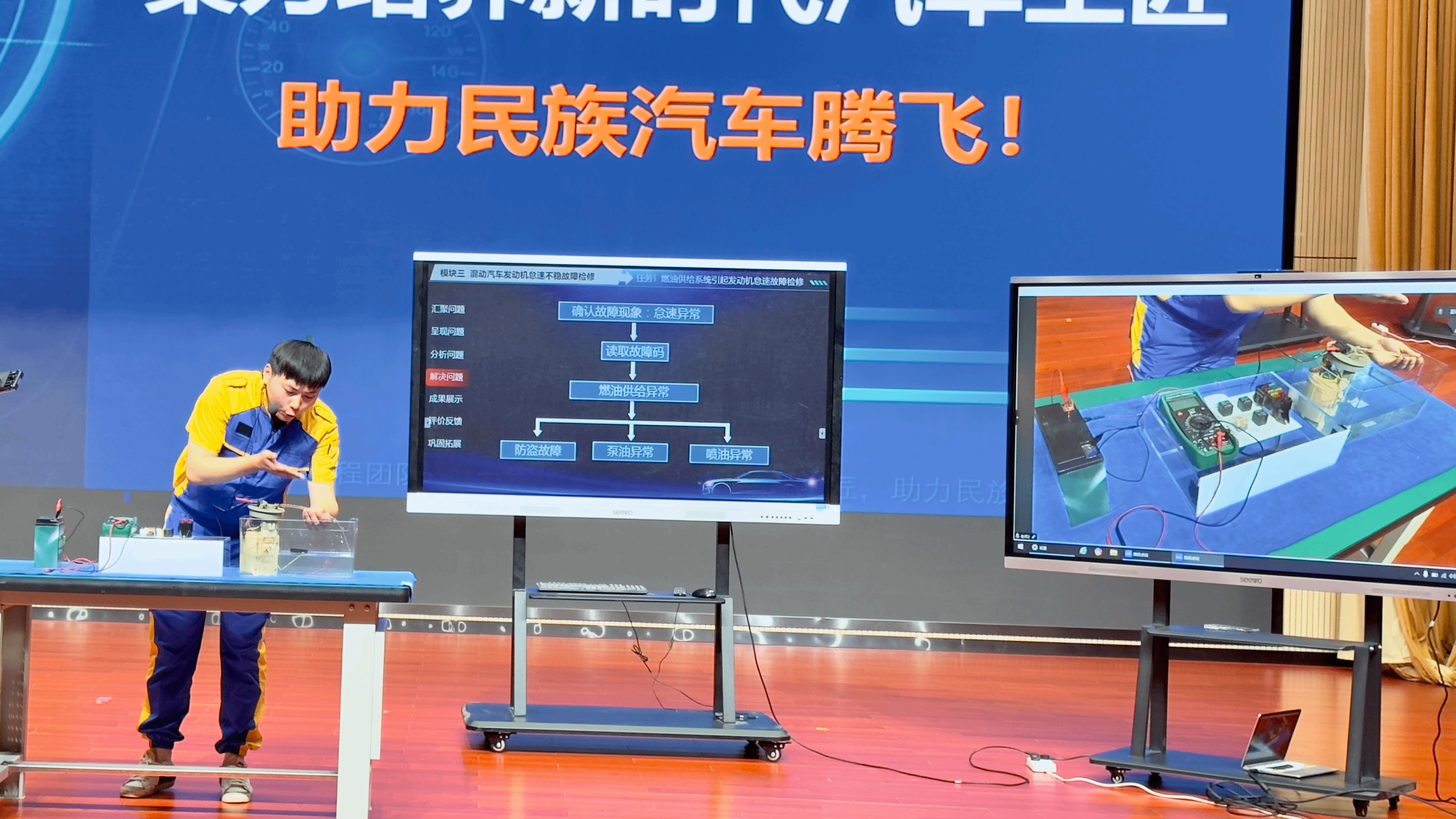 为提高教师的师德践行能力、专业教学能力、数字素养水平、综合育人能力和自主发展能力,促进“能说会做善导”的“双师型”教师成长,万象城体育awcsport于2024年5月11日在产教融合中心报告厅成功举办了教师教学能力比赛的现场决赛。