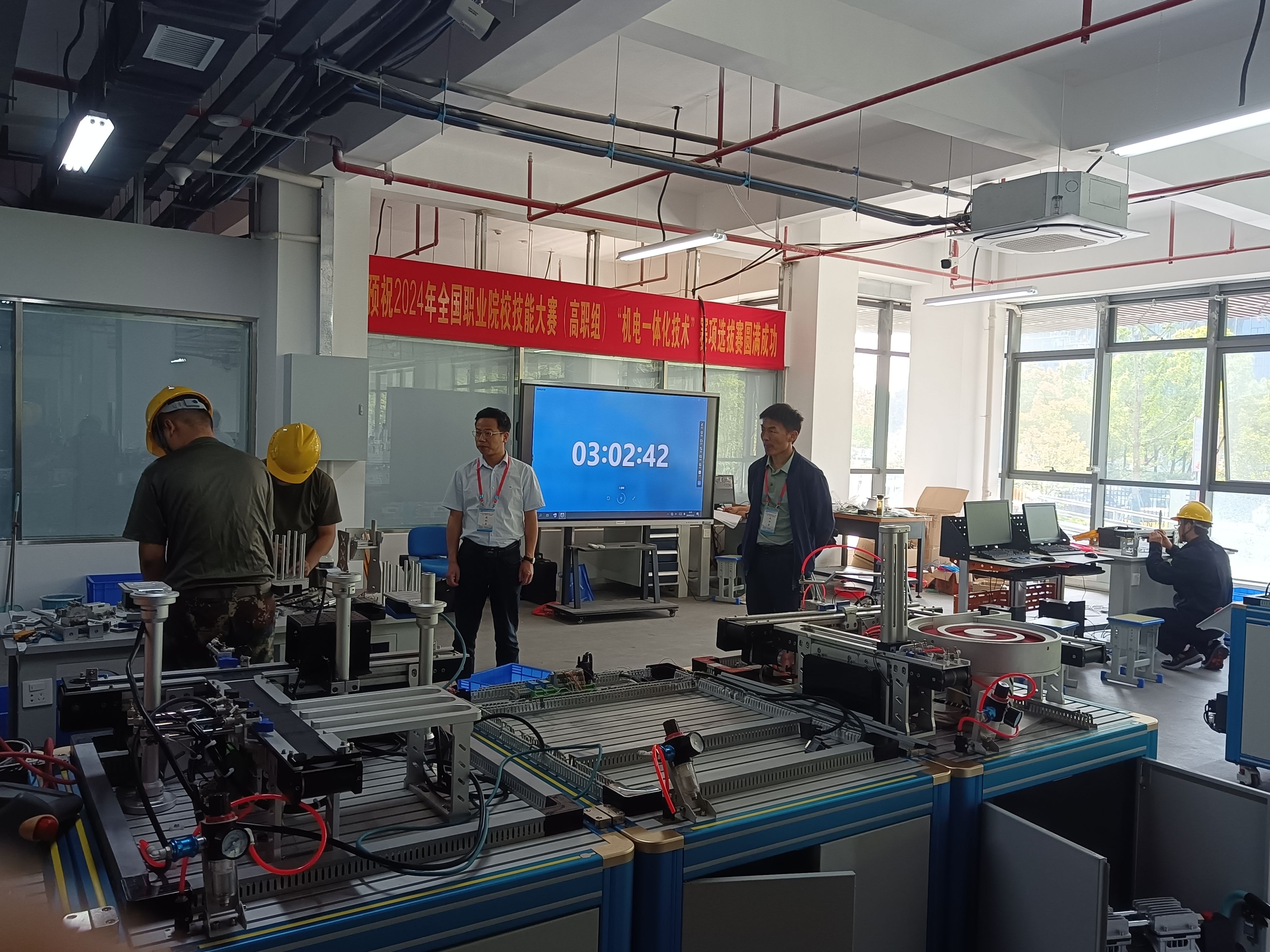 本次选拔赛对标全国职业院校技能大赛标准,围绕工作单元的机械拆装、电气接线与数字孪生,工作单元的编程调试、故障检修与系统优化等技术技能,并要求系统符合专业技术规范,实现生产过程自动化。为秉持公平公正的大赛原则,省教育厅派出巡视员对比赛过程进行全程监督,并抽取校外三名专家担任裁判。裁判认真履职、严格把关,比赛过程紧张有序,参赛选手沉着冷静、操作规范,顺利完成本赛项比赛。
