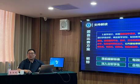 全国职业院校技能大赛专家库专家、安徽省特殊教育中专学校李怀彬老师深入探讨了教育教学能力比赛的精髓,分享了宝贵经验与精选作品,并对相关文件进行了精准解读,与参培教师们展开了详尽全面的交流。