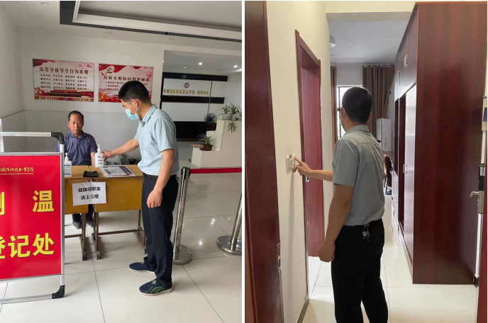 边述华副主任带队,实训中心人员参与,对各实验室和接待中心进行了安全检查,重点对实验室用电安全、消防安全与接待中心房间的消毒等重点工作进行了检查,就检查中发现的问题和隐患进行及时反馈,并责令立即整改,同时要求各工作人员必落实消防安全主体责任,加强自我管理,及时排查隐患,工作中时刻保持警惕,严防各类事故的发生,并针对接待中心的安全防疫工作,提出安全防疫措施意见和工作要求。