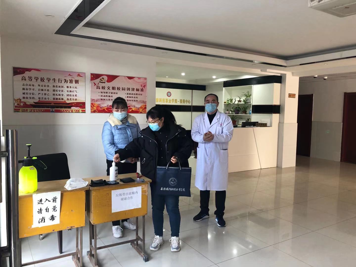 检查中边主任强调,接待中心工作人员要协助校内医生做好防控工作,时刻绷紧疫情防控这根弦,抓紧抓实抓细常态化疫情防控各项工作,尤其是工作人员更要做好日常消毒,提醒入住人员佩戴口罩,为入住人员提供一个安全卫生的居住环境。确保假期工作有序进行,安全度过假期。