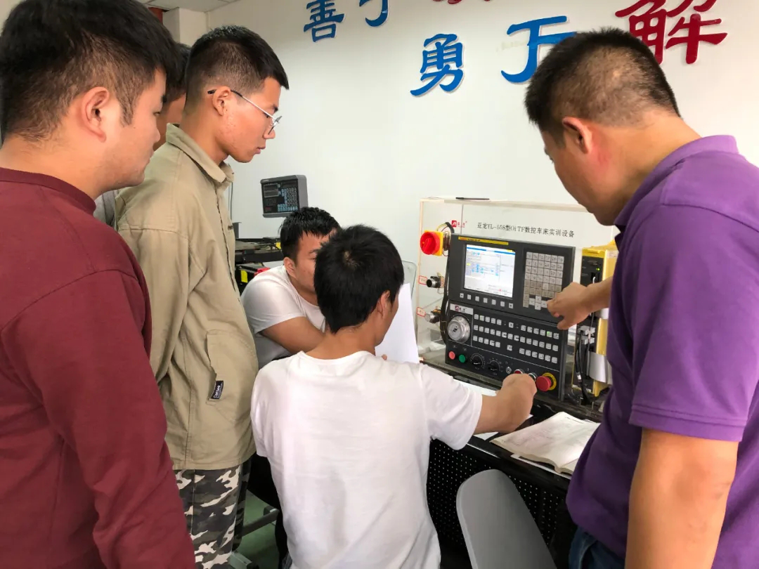 本次培训主要有“多工序数控机床操作调整工”和“工具钳工”两个工种,培训分为理论和实操两个部分。由新时代工匠学院的资深教师授课,主要讲授了比赛的技术标准,比赛中常见的错误和注意事项,并对大赛中常见的实例进行了现场演示和指导。