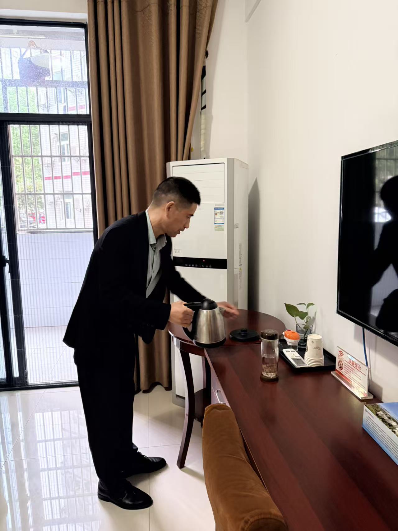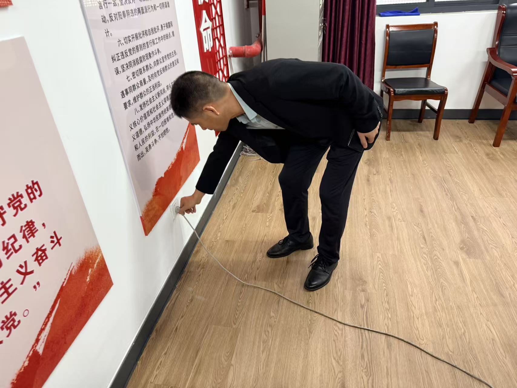 在办公区域以及学校接待中心一楼检查中,检查组重点查看了消防器材配备与完好情况、电气线路敷设规范性、门窗锁具安全性能及文件资料保密管理措施。对发现的个别办公室插线板使用不规范、轻微堆积杂物等问题提出了整改意见,并要求立即整改;为确保接待中心一楼安全,抽查了空调、热水器、插座等电器设备的运行状况。