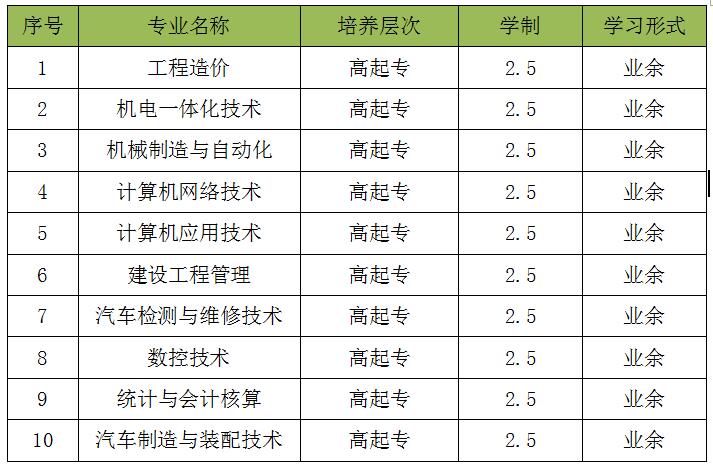 2018年万象城官网面向全省招收成人高等学历教育高中起点专科学生,具体招生专业如下: