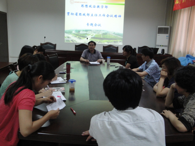 527下午,院思政部举行专题会议认真学习贯彻51819日在马鞍山召开的全省高校思政部主任会议精神。会议由思政部主任吴方庭主持,全体思政教师参加了此次会议。