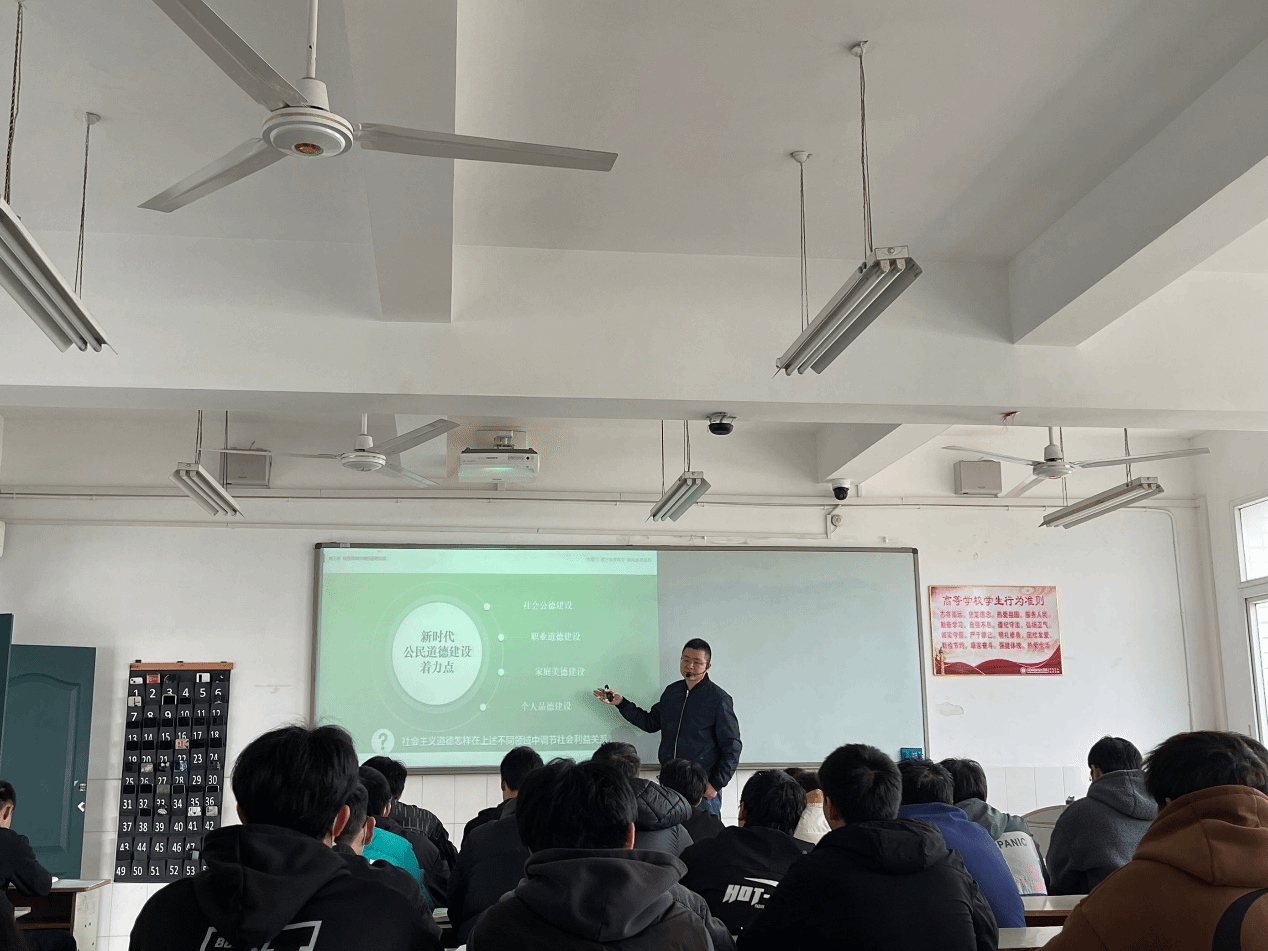 朱其阳老师于2023年3月23日5-6节课在2教410为22机械制造4班同学主讲“遵守道德规范 锤炼道德品格(三)”。
