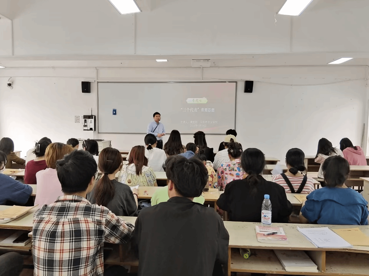 黄世超老师于2023年4月18日3-4节课在 1教312为20高会计1班、20高电商1班主讲“‘三个代表’重要思想”。