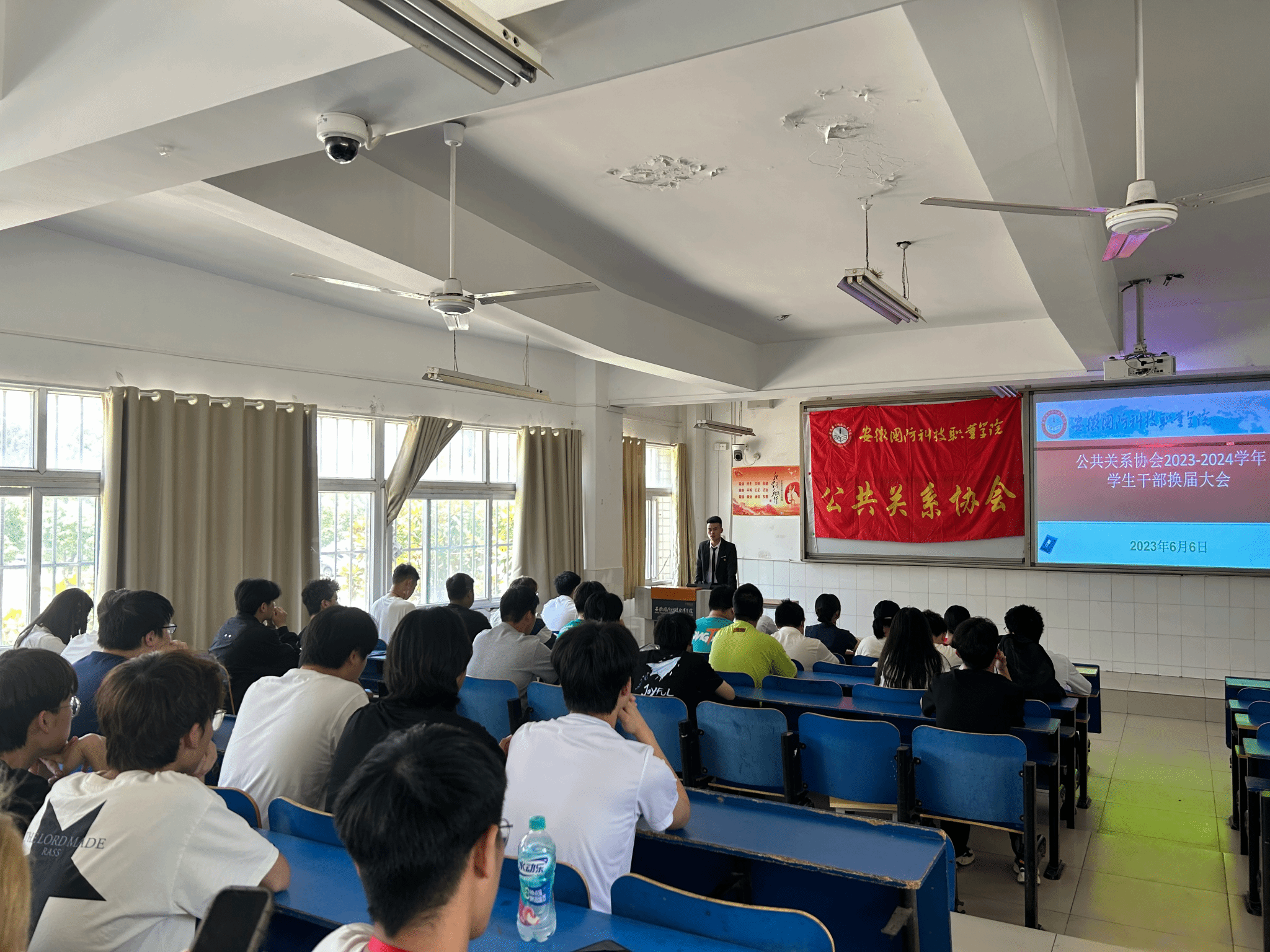 根据校团委《关于做好2023年度团学组织换届工作的通知》要求,公共关系协会于2023年6月6日中午12:00在2教105教室召开换届大会。会议由协会会长杨晓虎同学主持,社团指导教师汤晓莉老师、校团联工作人员和全体协会会员参加了此次换届大会。