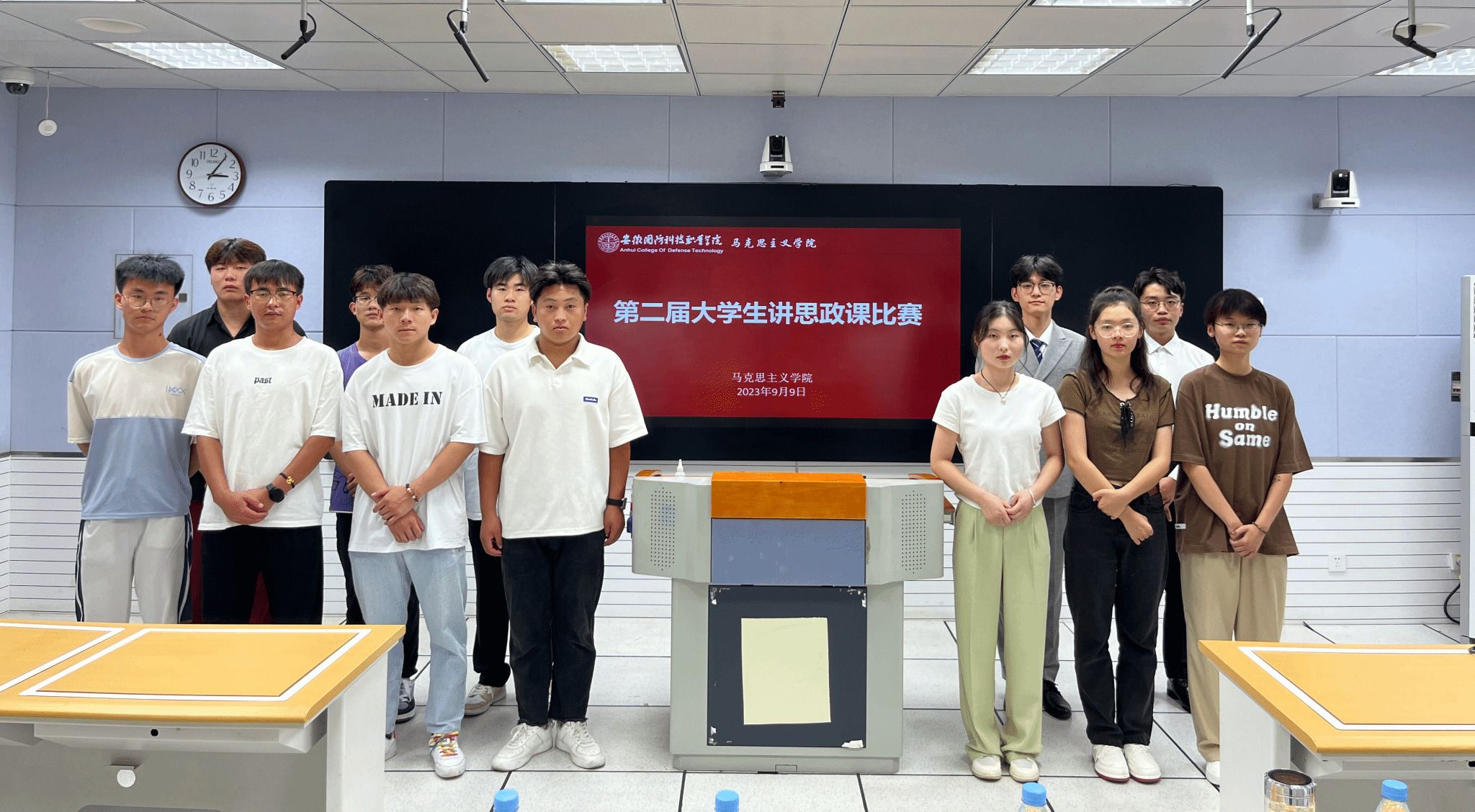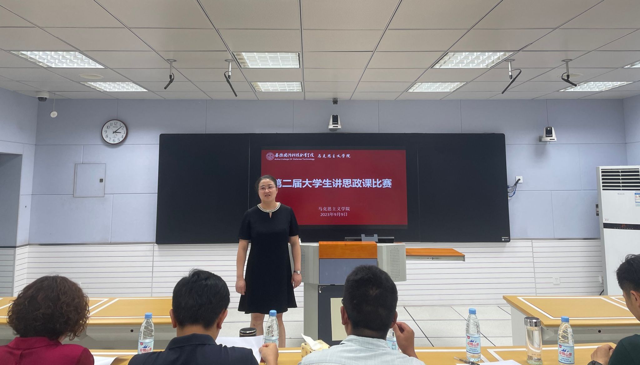 本网讯(马克思主义学院 武晓璐)为深入学习贯彻落实习近平新时代中国特色社会主义思想和习近平总书记关于深化思政课改革创新的重要指示精神,大力推动教学相长、师生共进,形成良好思政课教学氛围,更好地推进习近平新时代中国特色社会主义思想进教材、进课堂、进头脑,引导广大青年学生热爱思政课、学好思政课。9月9日下午,马克思主义学院在2教306教室举办大学生讲思政课比赛,比赛由校党委委员、宣传部部长、马克思主义学院院长陈思主持,邀请了六安职业技术学院思政部副主任袁文刚作为校外专家评委,与马克思主义学院教师评委组成了赛事评委组。