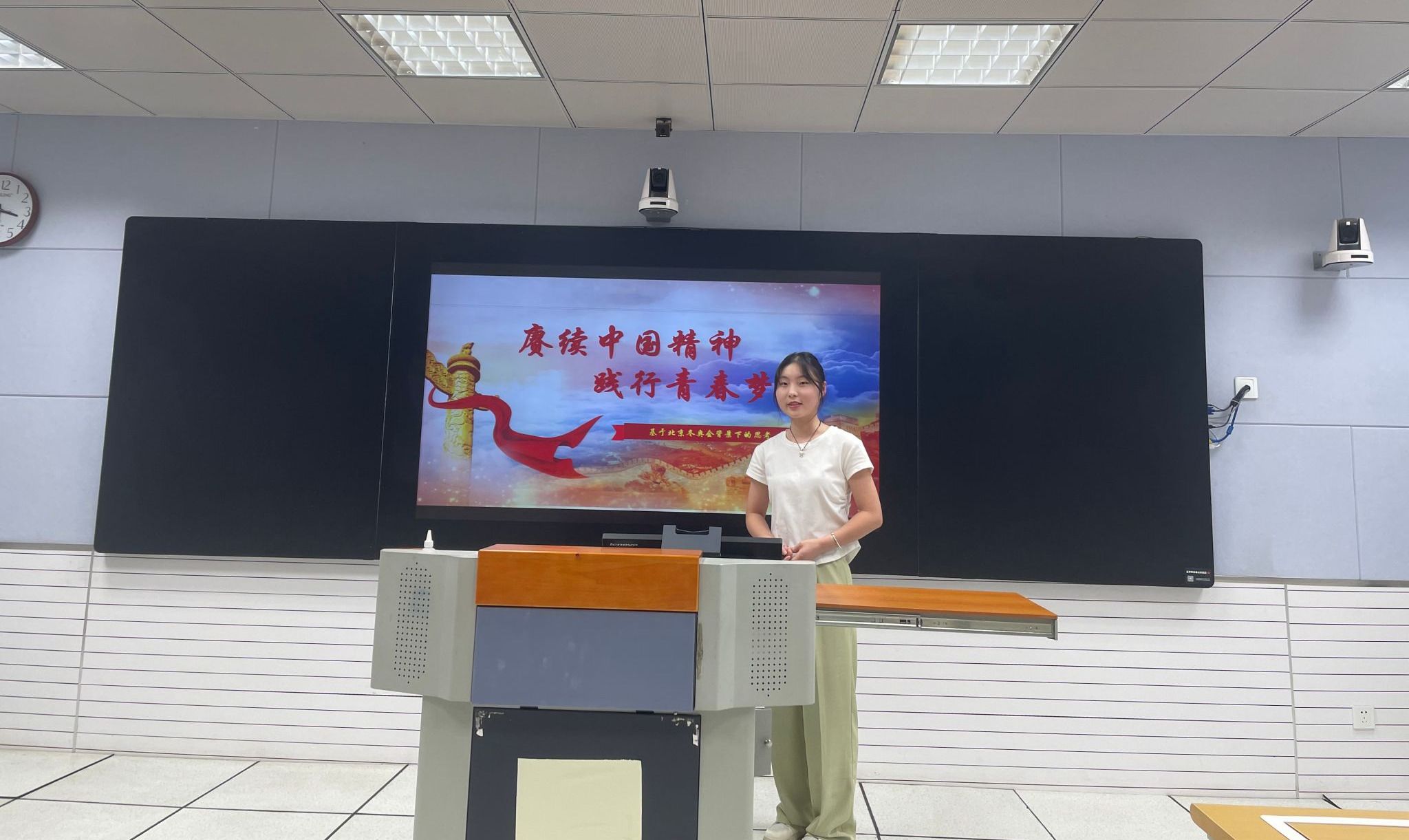 赛后,陈思院长作出总结。她指出,十三支队伍主题鲜明、内容丰富、案例生动,用心用情讲述了新时代大学生对思想政治理论课的所思所悟所感,彰显了对马克思主义的信仰、对中国特色社会主义的信念和对中华民族伟大复兴的信心。她对参赛选手严谨规范的选题予以肯定,对生动鲜活的授课方式给予赞扬,对所运用案例教学法、互动教学法等教学方法表示认可。她希望参赛选手继续深化对思政课教学内容的认识和思考,在讲思政课的实践中不断提高能力、锻炼毅力,实现自我超越、自我提升。