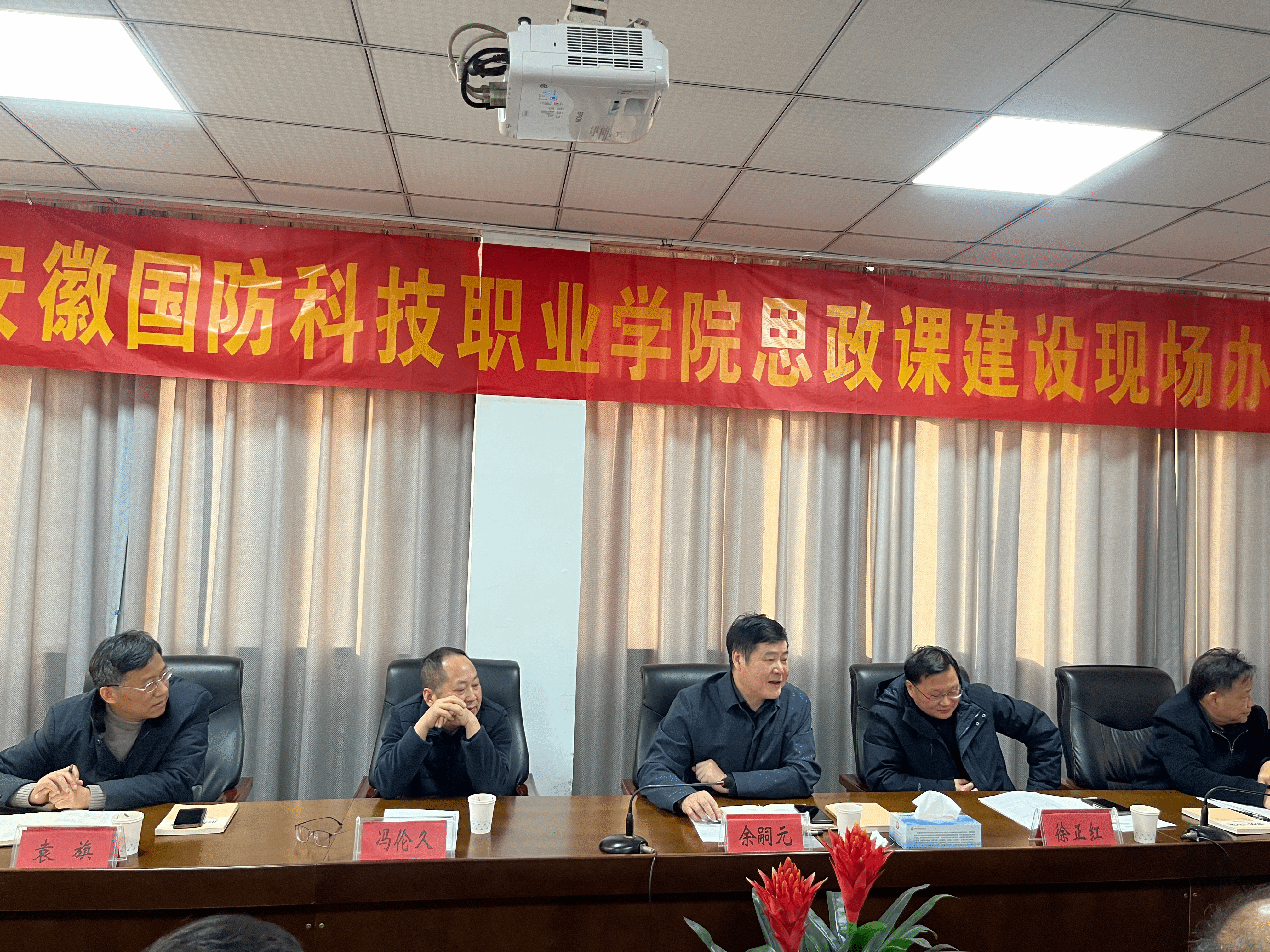 为切实提高思政课教学质量,充分发挥思想政治理论课在落实立德树人根本任务中的主渠道作用,11月27日,校党委书记余嗣元,党委副书记、校长徐正红,校党委副书记冯伦久,纪委书记丁守宝、党委委员、副校长袁旗等校领导赴马克思主义学院召开思政课建设现场办公会,详细了解思政课建设情况,指导思政课建设。会议由马克思主义学院党总支书记黄祥主持,校党委委员、宣传部部长、马克思主义学院院长陈思以及部分思政课教师代表参加。