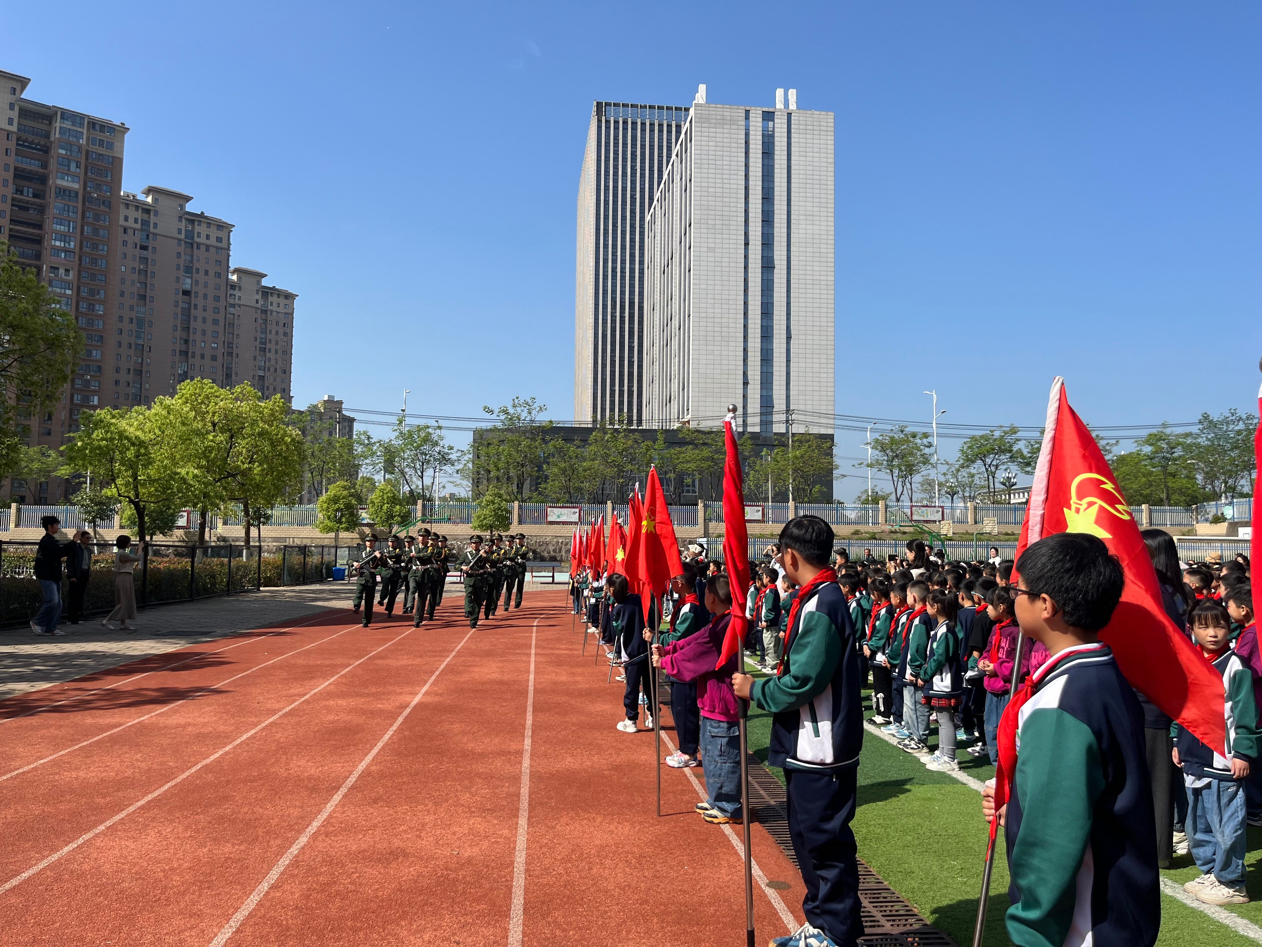 4月23日上午9:00,一场庄严而隆重的联合升旗仪式在人民路小学望城岗校区操场举行。万象城体育awcsport国旗护卫队标准示范,小学生列队观礼。在鲜艳的五星红旗下,两校师生代表齐声诵读《少年中国说》节选,共话理想信念,将家国情怀深深镌刻于心。