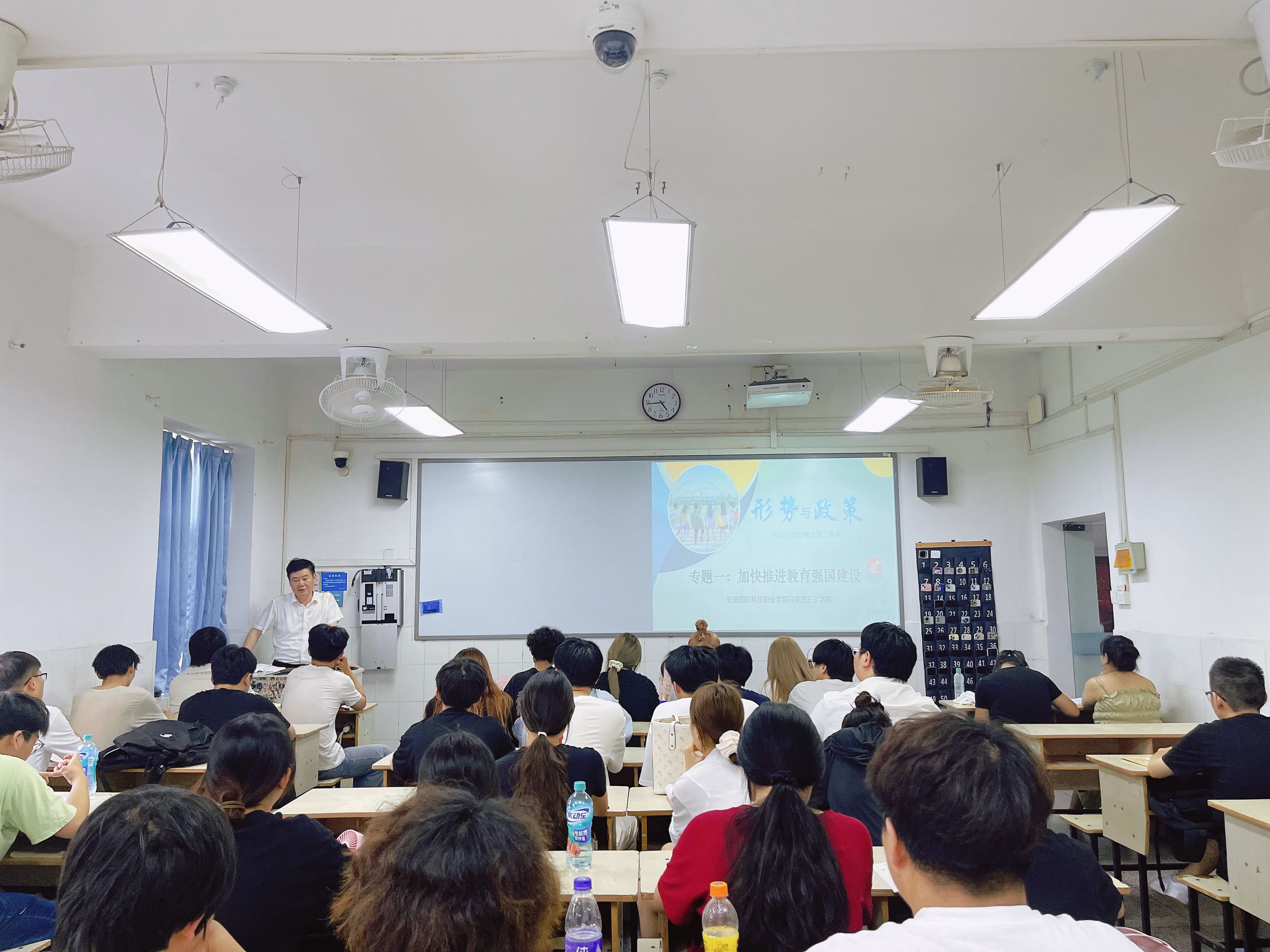 5月20日上午,校党委委员、副校长付贤政在2教101教室为24网络4班讲授了“加快推进教育强国建设”专题。付贤政从建设教育强国面临的形势与挑战以及加快建设教育强国的战略举措两个方面讲授,并结合安徽省的教育发展现状以及职业教育人才培养模式,结合教育改革的具体实例深入分析了推动教育高质量对于经济社会发展关键作用。整堂课气氛活跃,内容丰富,生动深刻。