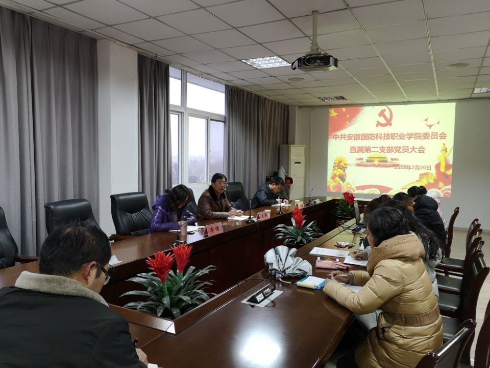 本网讯 2月20日下午,直属第二党支部在党员活动室召开全体党员大会,学习《国家职业教育改革实施方案》《安徽省技能型高水平大学建设标准(试行)》《安徽省特色高水平高职专业建设标准(试行)》等文件精神,进一步深刻领会国家职业教育改革方向和内涵,为学校技能型高水平大学建设打牢理论基础。支部书记袁旗主持会议,全体党员参会。