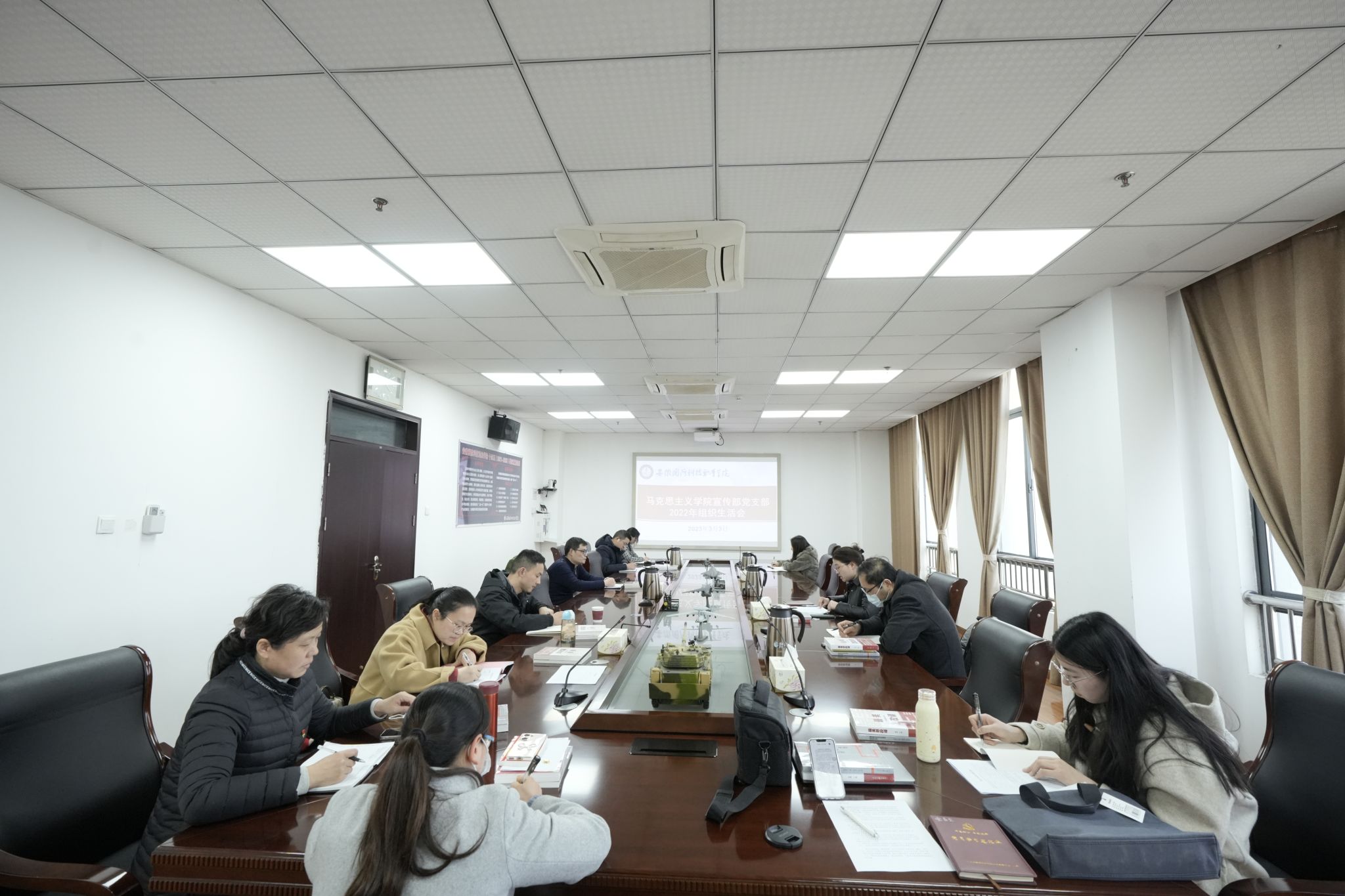 为深入学习贯彻党的二十大精神,坚持不懈用习近平新时代中国特色社会主义思想凝心铸魂,进一步提升党支部的战斗堡垒作用,增强党员的凝聚力与战斗力。根据《关于万象城官网召开2022年度党支部组织生活会和开展民主评议党员的通知》(校人组[2023]3号)要求,3月3日下午16:00,马克思主义学院和宣传部党支部在秉心楼第一会议室召开2022年度组织生活会和民主评议党员会议,会议由支部书记陈思同志主持,全体党员参加了此次会议。