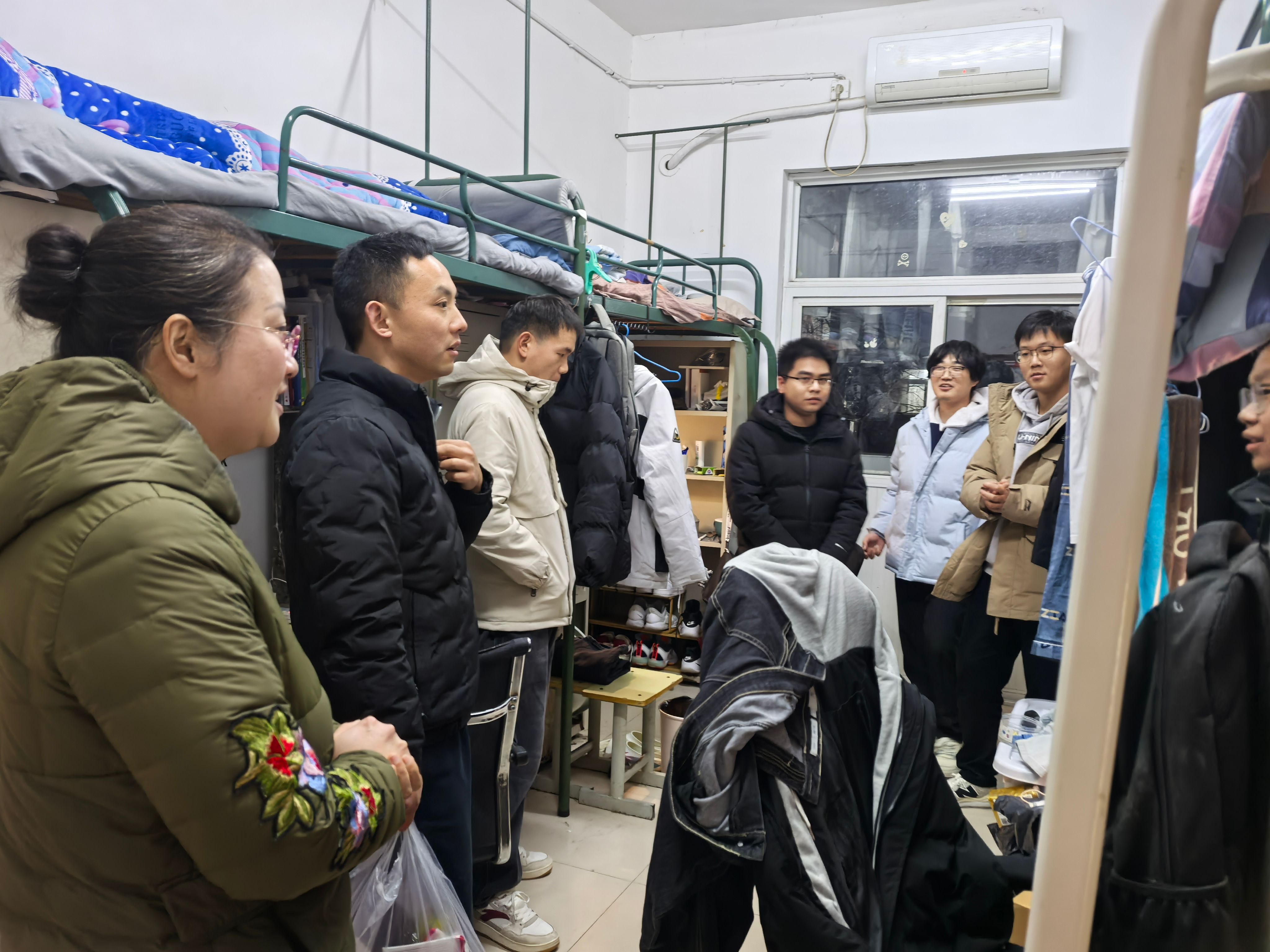 在学生宿舍,老师们亲切地询问同学们在生活上有没有什么困难,陈思院长还跟同学们分享了自己当年的考研复习经验,提醒同学们要合理安排时间、劳逸结合。叮嘱同学们考试的时候特别注意防寒保暖,保持良好的身体状态和积极的心态应对考试。黄祥书记最后提醒同学们要保持宿舍卫生和冬季用电安全。