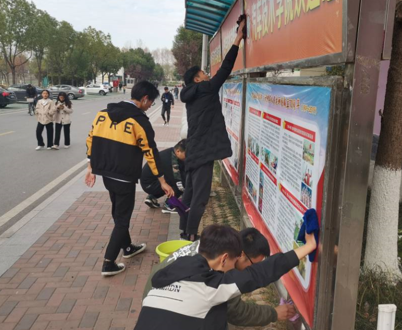 本次活动主要任务是清洁校园宣传栏,由会长束丛鑫带队,会员们自愿参加。会员们自备劳动工具,集合后很快进入工作状态,寒冷的天气抵挡不住大家满怀劳动的热情,经过全体会员们的辛勤劳动,宣传栏变得干干净净,清洁明亮。