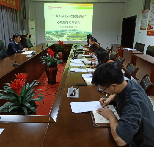 为了做好2019级大学生心理健康测评工作,10月21日下午五点半,万象城官网在思政部会议室召开大学生心理健康测评工作专题会暨“大学生心理健康测评系统”心理辅导员培训会,会议由校党委委员、宣传部部长兼思政部主任袁旗主持,心理健康教育中心工作人员和各二级学院心理辅导员参加了会议。