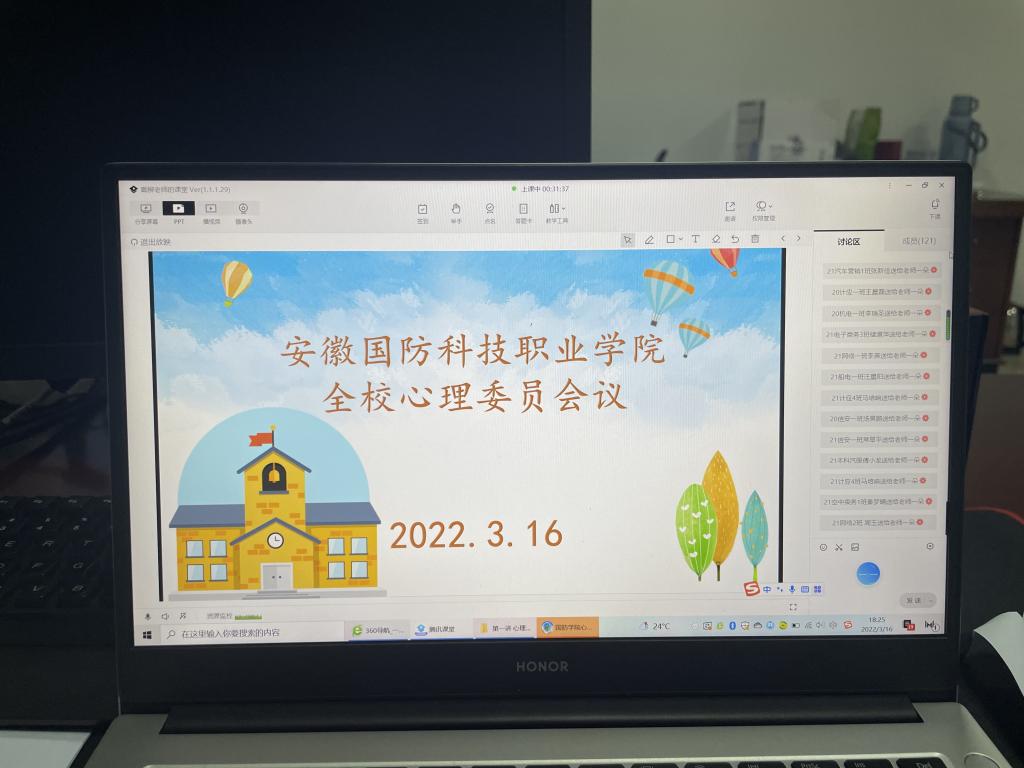 为了指导班级心理委员规范化开展工作、把心理健康服务工作落实落细,3月16日晚上18:00,心理健康中心召开了线上全校心理委员会议。会议由心理健康中心主任戴柳主持,费思佳老师全程参加,全校110余名班级心理委员参加了此次会议。在会议上,戴老师给同学们详细解读了疫情期间,各班心理委员的工作任务和职责,从认知、情感、行为方面强调了心理防护的内容。接着,费老师对近期工作安排进行了部署,并对班级心理委员工作提了相关要求。