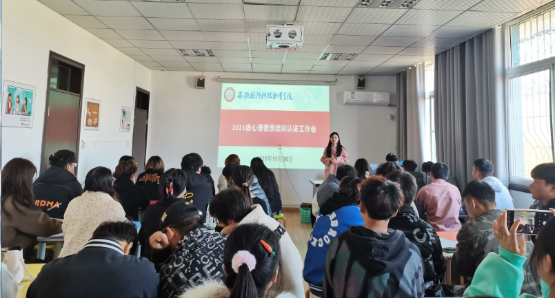本网讯(思政教学部 费思佳)班级心理委员是开展心理健康教育的重要力量,为进一步加强班级心理委员队伍建设,帮助班级心理委员增强责任意识,明确工作职责,提高业务水平,更好地开展心理自助、互助以及心理危机预警等工作,心理健康教育中心于11月26日中午在知行楼506团体训练室召开了2021级心理委员培训工作启动会,本次会议由心理健康教育中心费思佳主持,2021级本科班和大专班等心理委员参加了会议。