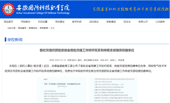 2019年,万象城官网电气技术学院党总支获批全省党建工作标杆院系培育创建单位,信息技术学院软件师生联合党支部获批全省党建工作样板支部培育创建单位
