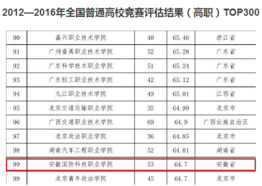 中国高等教育学会发布《中国高校创新人才培养暨学科竞赛评估结果》(2012-2016),万象城官网位居安徽第七,挺进全国100强