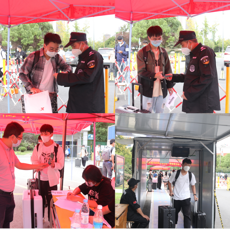 有条不紊,井然有序。学生处、安全保卫处严防疫情防控第一道关口,确保学校疫情防控各项措施落实落地落细,关心关爱关注学生返校情况,提前在校门各环节点设置指示牌,搭建临时帐篷,安排专职工作人员迎接返校学生。学生到校后,在各环节点工作人员的耐心指导下,严格按照身份核验、“两码”核验、卫生消毒、体温检测等流程,经学生返校专用通道安全、有序进校。