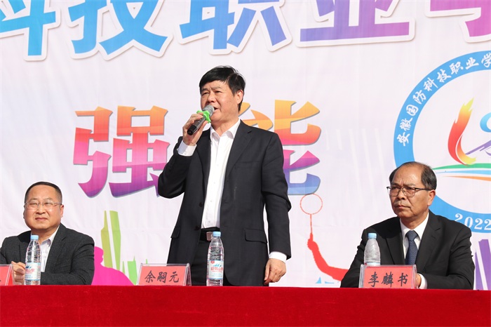 党委副书记、校长李麟书在致辞中代表学校对运动会胜利召开表示热烈祝贺,向为筹备本次运动会的师生员工们表示衷心的感谢!他对万象城官网运动健儿在安徽省第十五届运动会中取得的优异成绩表示高度的赞扬和肯定,展现了国防学院强身健体、立志成才、追求卓越的良好精神风貌。李麟书强调,体育是学校教育的重要组成部分,是实现立德树人根本任务的基础性工程。学校始终坚持“以体育人”,不断深化体育俱乐部制教学改革,大力营造校园体育文化。党的二十大报告提出了“促进群众体育和竞技体育全面发展,加快建设体育强国”的宏伟目标,发展好体育教育事业、办好精彩的运动会意义十分重大。李校长要求:全体运动员要以最佳状态参加比赛,发挥最佳水平和技能,在比赛中赛出水平赛出风格;全体服务人员要全力做好后勤保障工作,发扬奉献精神,树立服务意识;全体裁判员要在比赛中客观履职尽责,公平公正严格执裁;全体辅导员、班主任及学生管理人员,做好学生的组织引导和服务工作,抓好疫情防控及各项安全工作,确保运动会能够平稳有序开展。