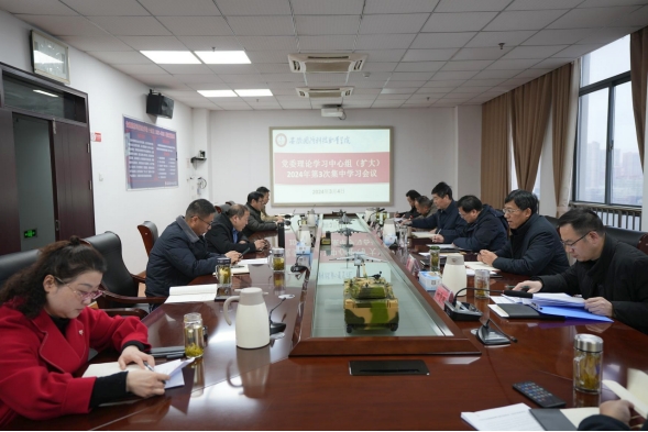 本网讯 3月4日上午,学校召开党委理论学习中心组(扩大)2024年第三次集中学习会议。校领导余嗣元、徐正红、冯伦久、丁守宝、袁旗、付贤政出席会议,党委委员、各单位(部门)党政主要负责人(含主持工作)参加会议。