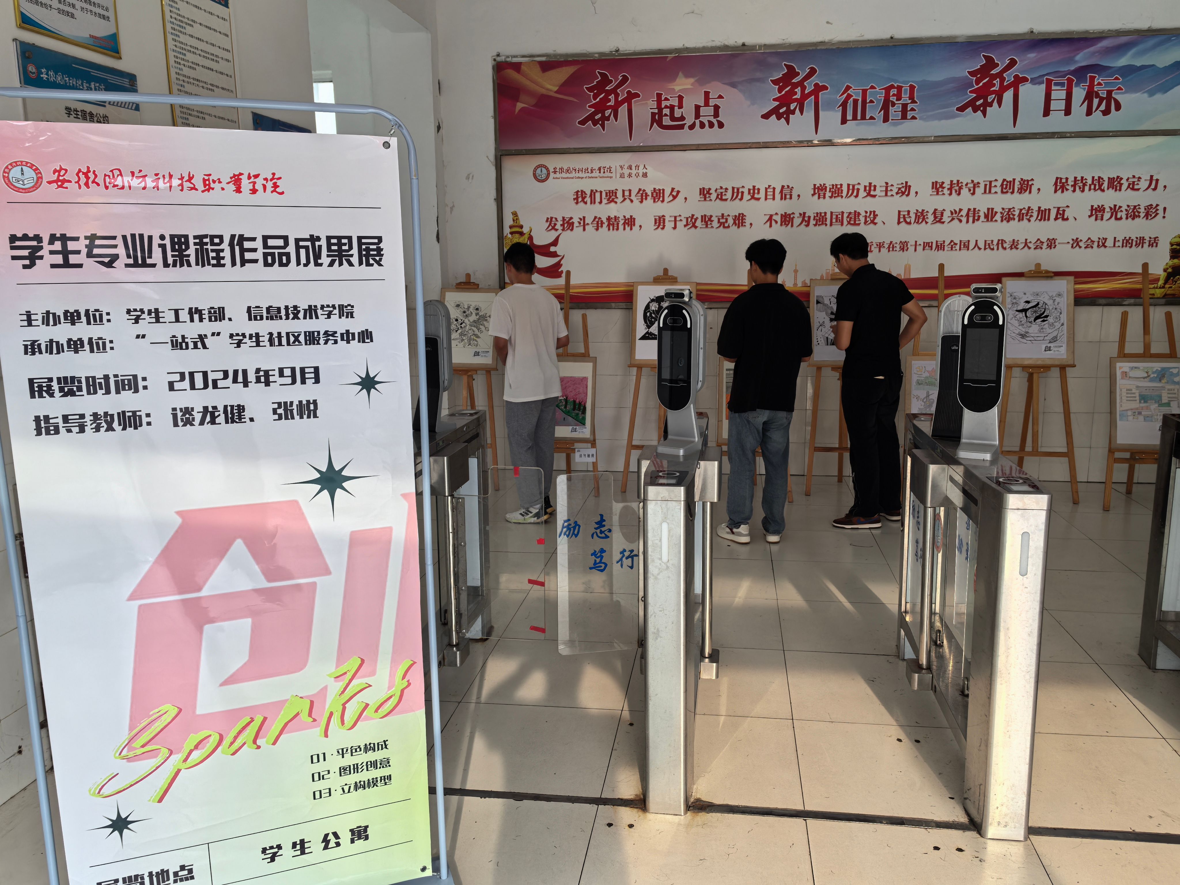 本网讯(学生处 刘秦珂)为落实立德树人根本任务,探索学生社区宿舍文化铸魂育人功能,强化美学教育与技术教育的深度融合,9月25日,由学生工作部和信息技术学院主办, “一站式”学生社区服务中心承办的计算机应用技术学生专业课程作品成果展在学生公寓6号楼、7号楼、10号楼顺利展出。